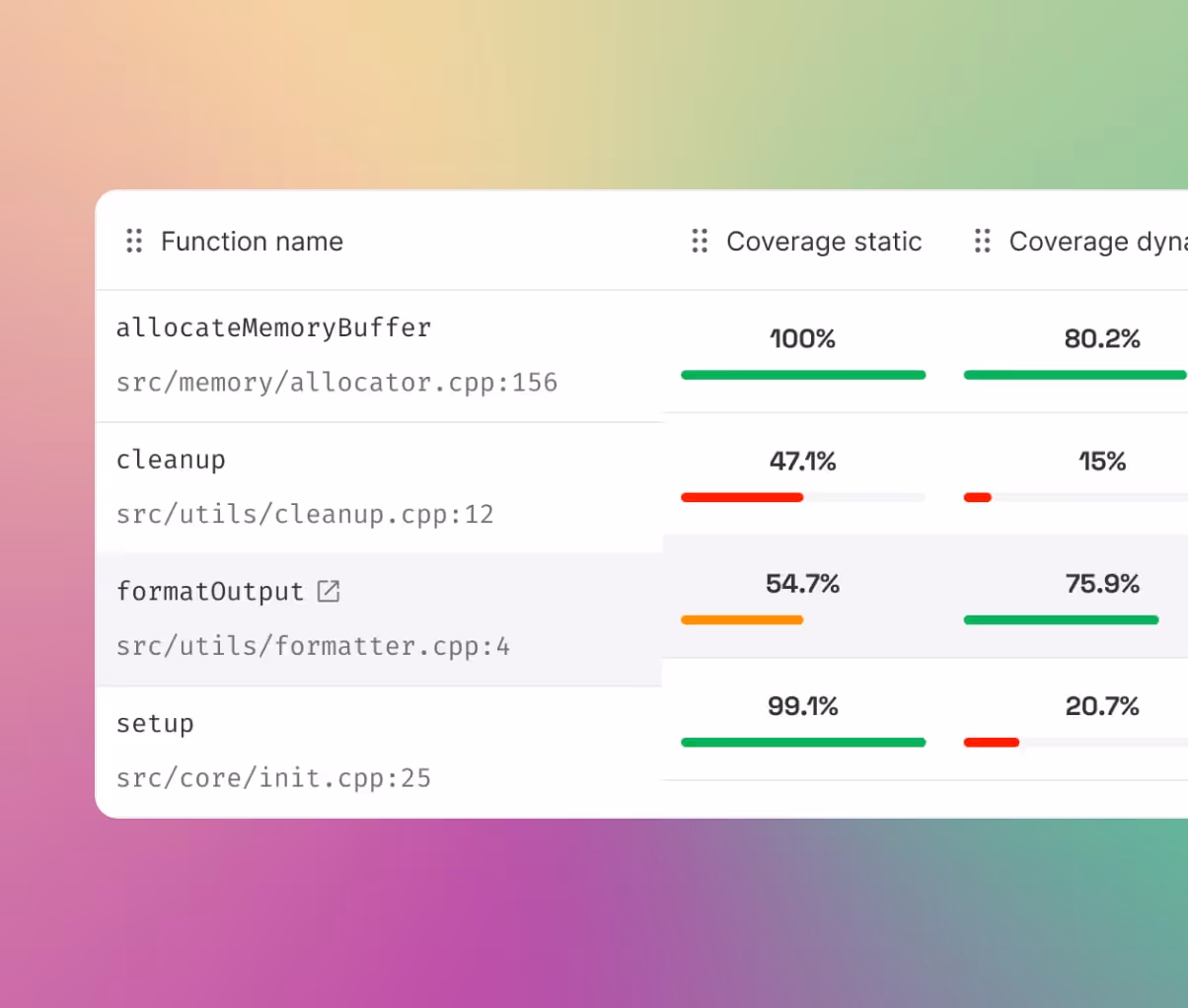 We use static and dynamic analysis to map your application’s structure, detect complexity, measure code coverage, and identify areas for optimization.